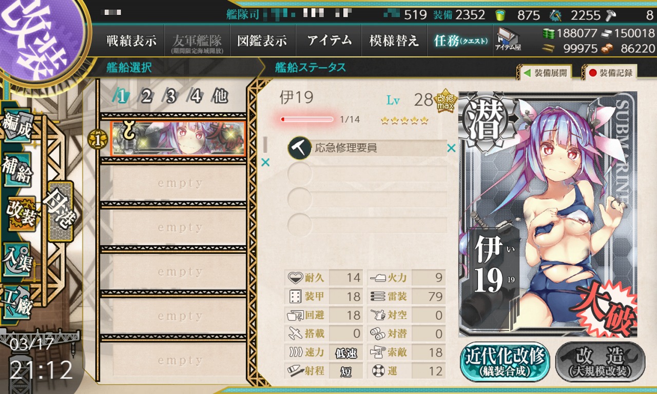 高速化サミュが空襲で大破したのでバイト島風と適当にローテ。