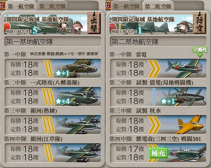 Hマスのあとなので基地が陸攻4になってたから一機東海に変更しB1に飛ばして熟練度付けの足しに。
