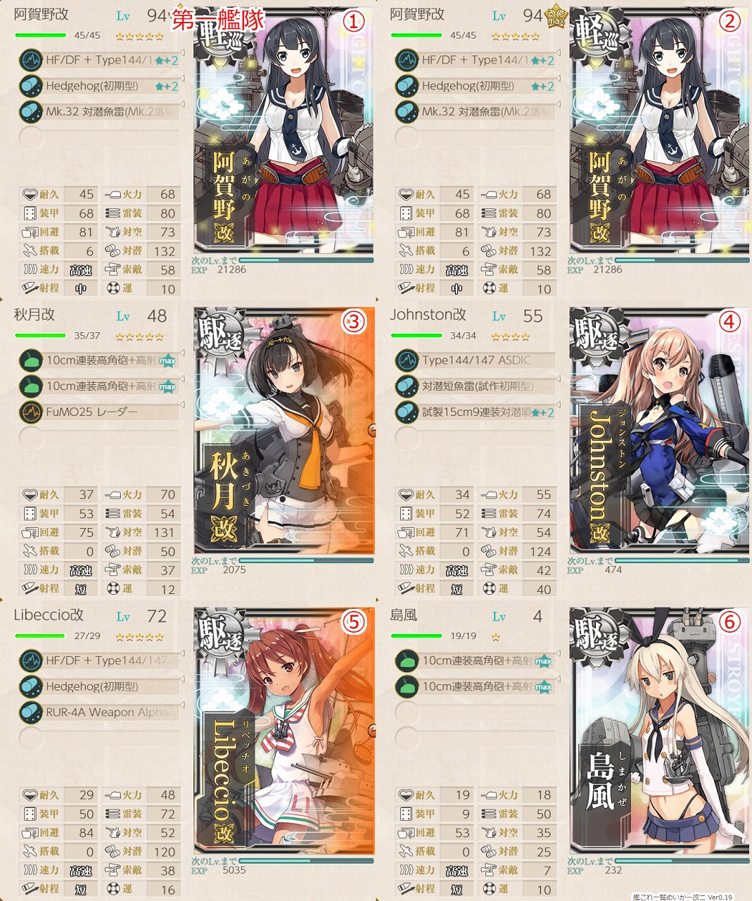 秋月はサブ。ジョンストンはサブサブ。阿賀野、リベはメイン。