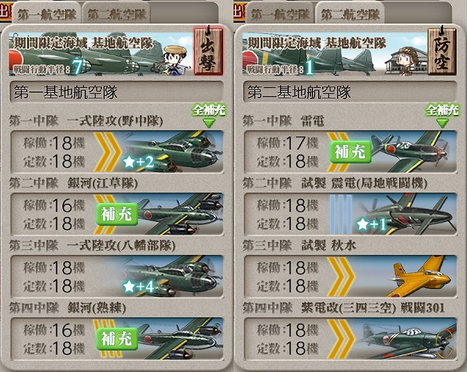 Hマスのあとなので基地が陸攻4になってたから一機東海に変更しB1に飛ばして熟練度付けの足しに。